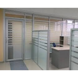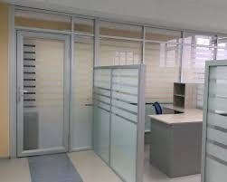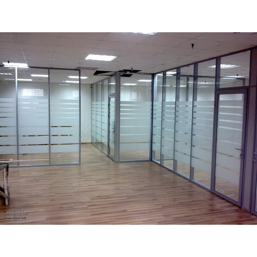 Подробные характеристики Офисные перегородки c дверью из алюминия и пленкой на стекле.