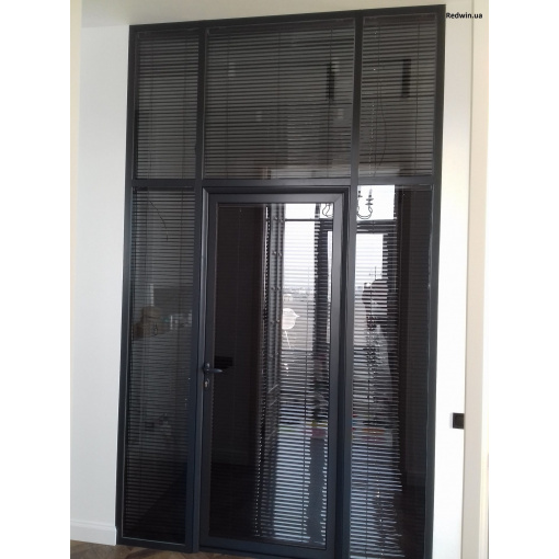 Подробные характеристики Офисные перегородки Framex (Украина) графит с жалюзи или пленкой на стекле.