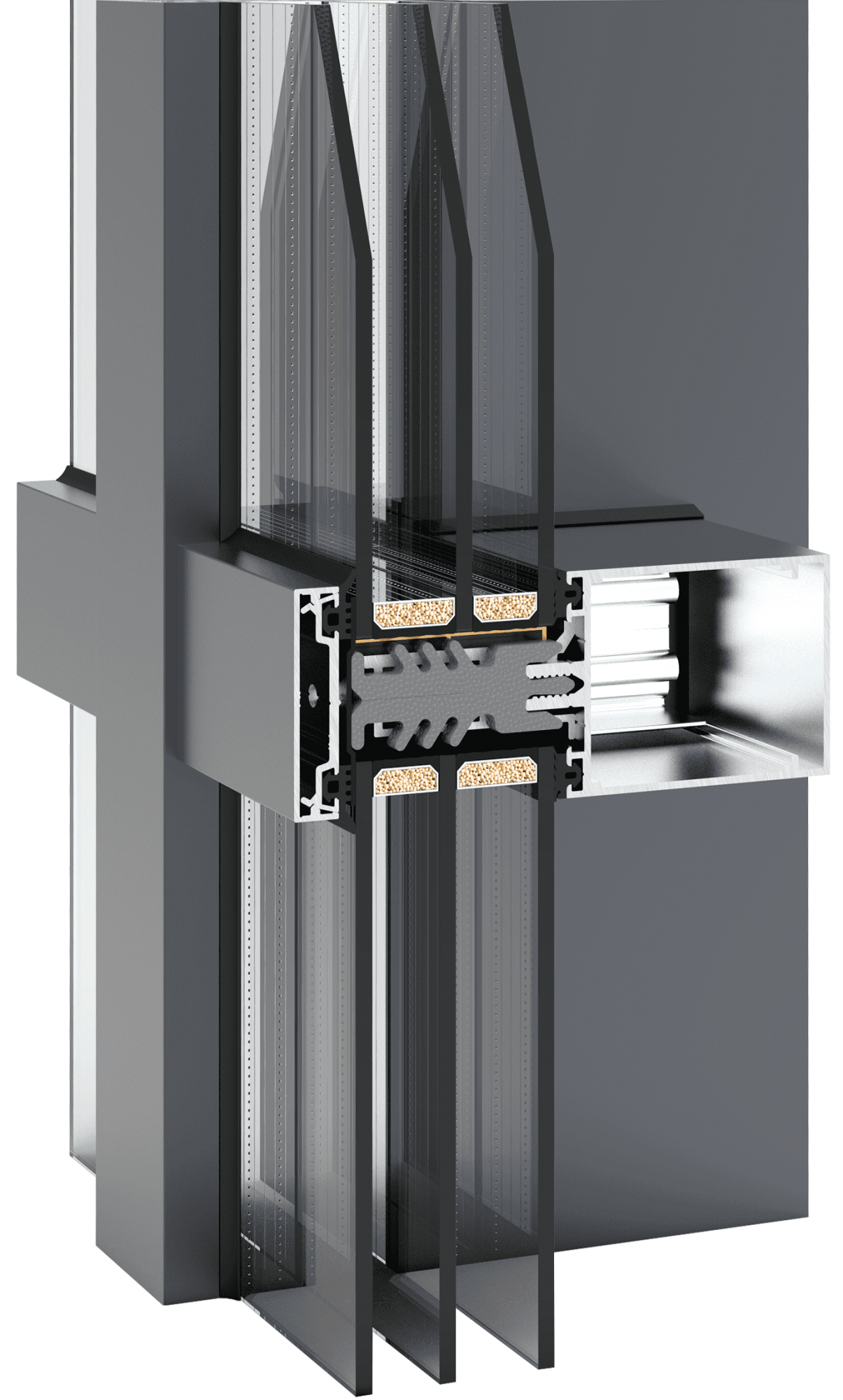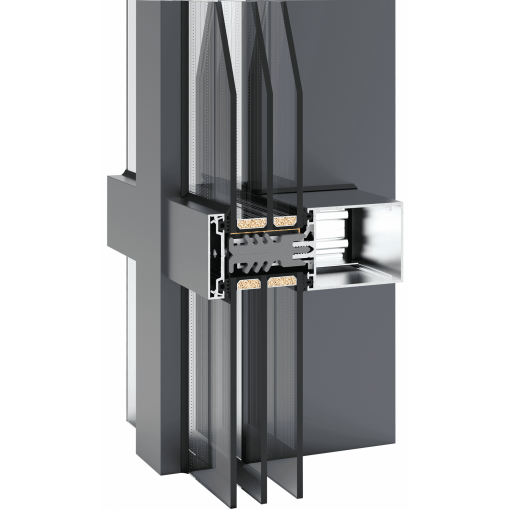 Мы применяем стоечно-ригельные системы из "теплого" алюминия.