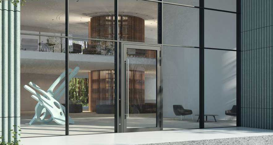 Панорамный дизайн этой системы выделяется минимальной лицевой поверхностью профилей и скрытой рамой, расположенной внутри примыкания к корпусу здания.