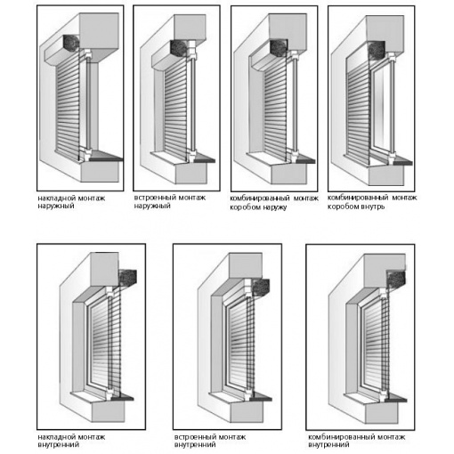 Рольставни могут устанавливаться на проёмы (на стену) или в сам проём, тем самым будет углубляться в стену.