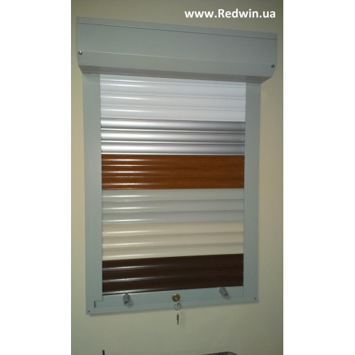 Защитные роллеты (рольставни) – это вертикально движущееся полотно из ламелей, соединённые, между собой, в подвижные замки.