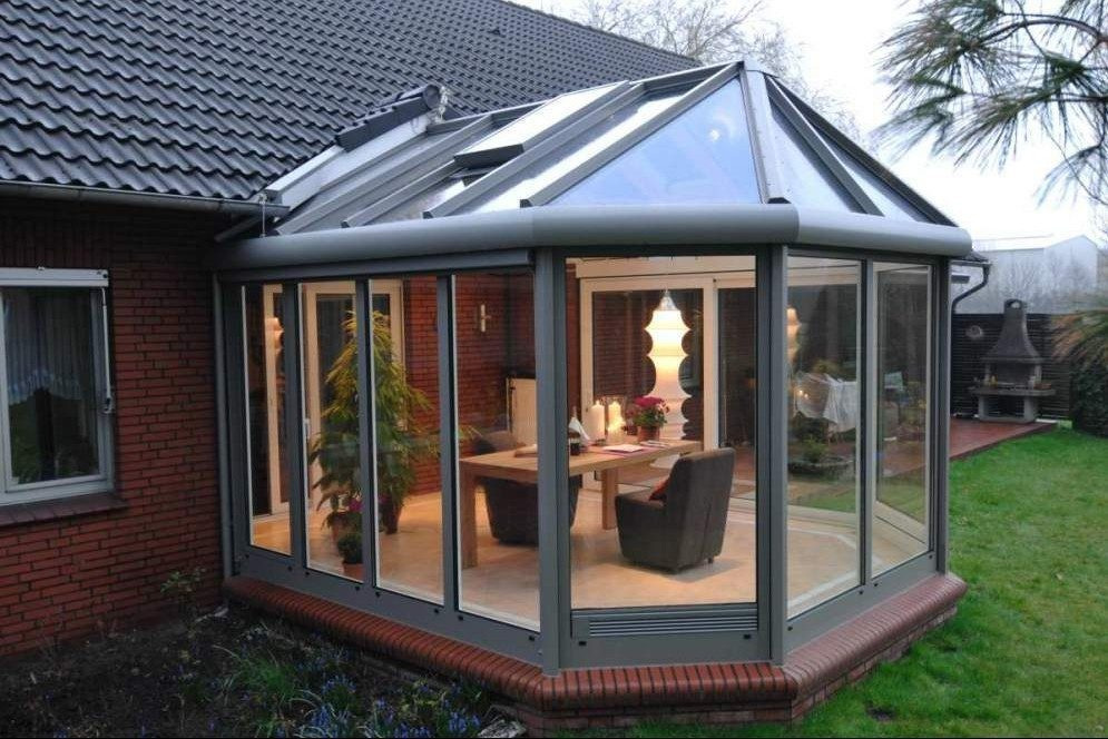 Подробные характеристики Зимний сад со стеклянной крышей от производителя в Киеве, крыша из стекла.