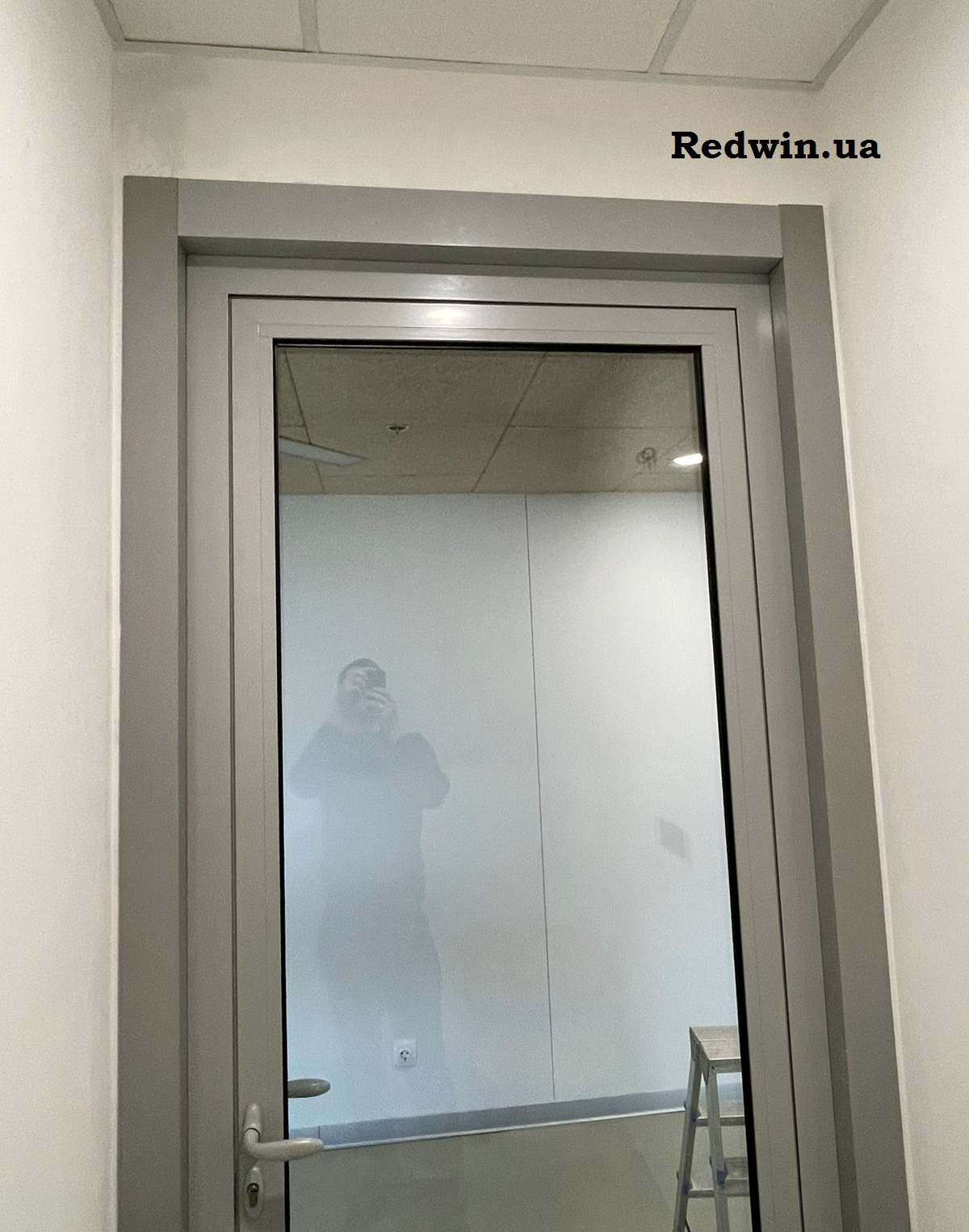 Детальні характеристики Алюмінієві двері з українського профілю з домофоном у під'їзд | ТОВ "Редвін Груп".