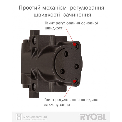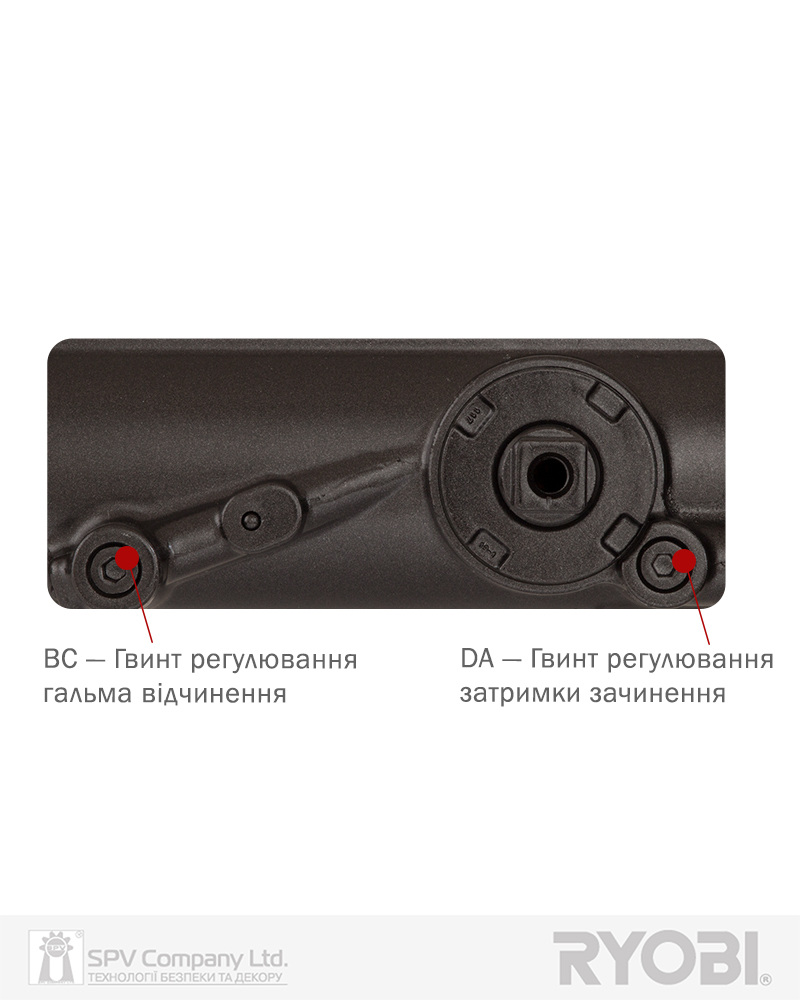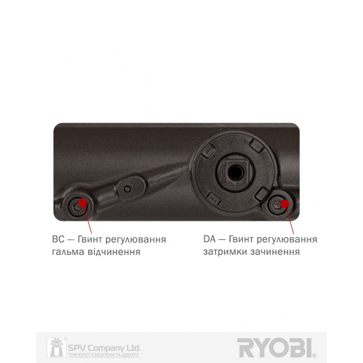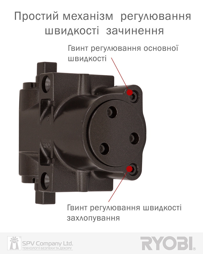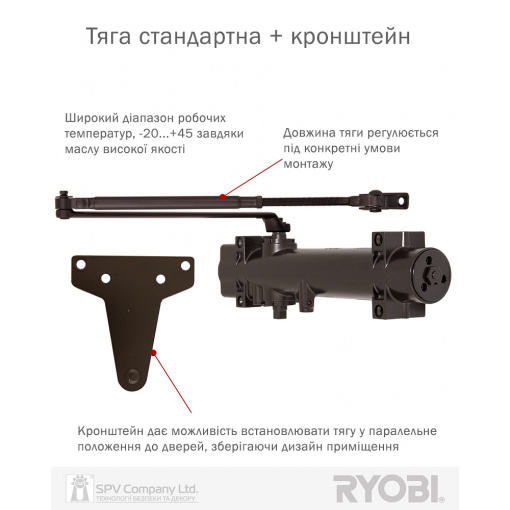 Дотягувач дверей RYOBI® серії 4550 модель D-4550 UNIV (Японія) накладного типу – призначений для керування великими зовнішніми та внутрішніми дверима.