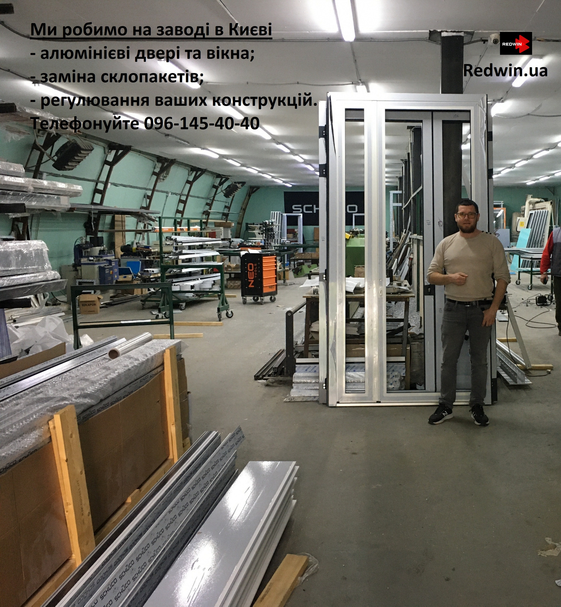 Наше виробництво дозволяє робити алюмінієві двері вхідної групи та вікна з алюмінію будь-якої складності. Куди ми встановлюємо свої двері та вікна: - магазин: - офіс: - приватний будинок: - Салон краси або ресторан: Вхідні двері від ТОВ Редвін Груп це: - замки з 1 або 3-ма точками замикання; - силові трипелюсткові та стандартні петлі; - електрозамки; - протиударні склопакети та поклейка тонування. Широкий спектр кольорів від кольорових до фарбування під структуру дерева. На всі вироби гарантуємо 5 років. Зателефонуйте та отримайте консультацію та прорахунок вартості безкоштовно. Подробиці за телефоном 096-145-40-40 або дивіться на нашому сайті https://redwin.ua/services/dveri-vkhodnoy-gruppy/ Гарантія Сервісне обслуговування. Доставка. Приймаємо усі форми оплати – платники ПДВ. Запрошуємо до співпраці архітекторів, дизайнерів та виконробів. Дзвоніть та робіть замовлення на алюмінієві двері та вікна європейської якості за ціною від заводу.