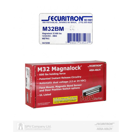 Детальні характеристики Замок електромагнітний SECURITRON (USA) M32 B M 12/24В накладний 272 кг.