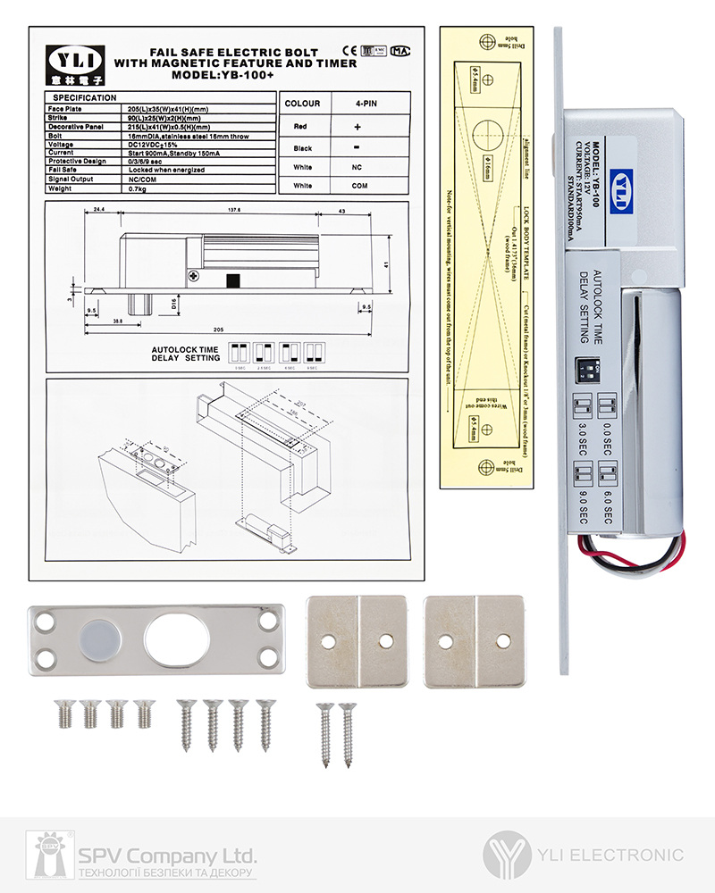 - Затримка відчиненого стану: 0, 3, 6, 9 сек