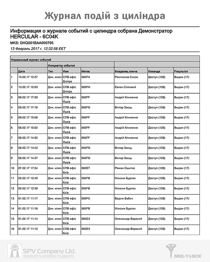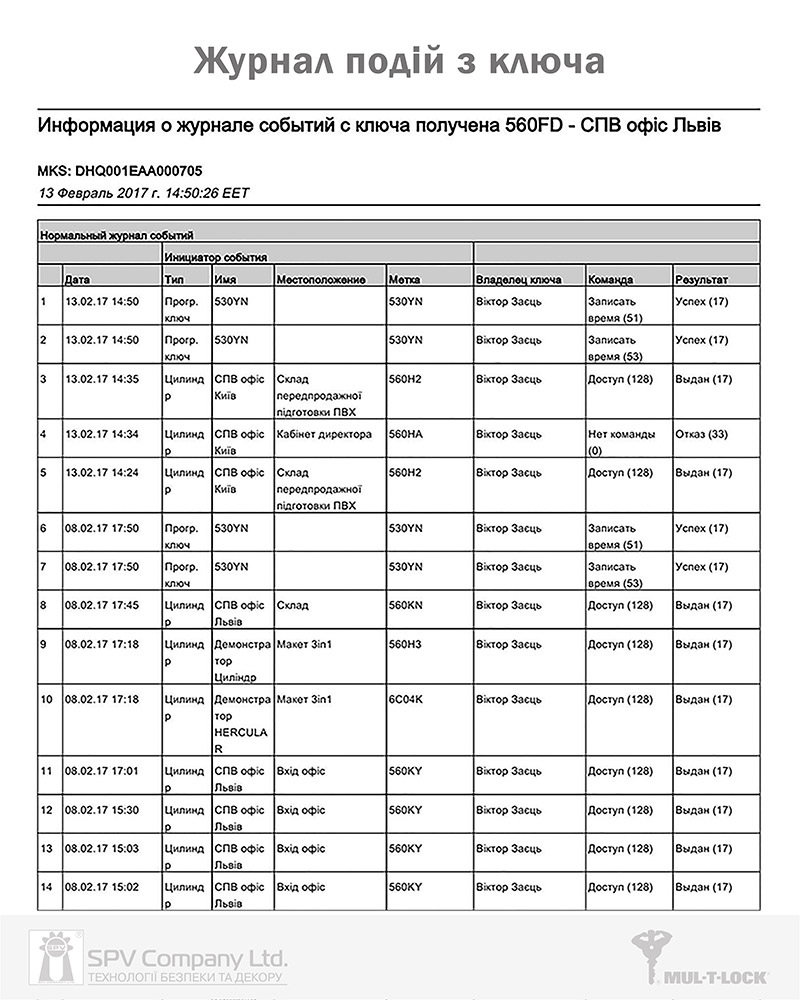 - Можливість отримати аудит подій як із замка так і з ключа у разі потреби. Це означає, що власник циліндра зможе замовити послуги зі зчитування журналу подій у системі. Шкірний контакт ключа із замком чи циліндром фіксуються у журналі, який окремо зберігається як у ключах, так і в циліндрах CLIQ® (Клік).