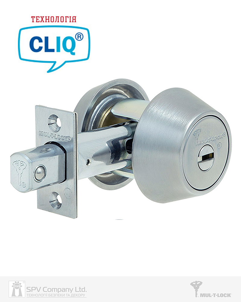 - Додатковий замок підвищеної надійності Dead Bolt Hercular з електромеханічною системою CLIQ та патентованою платформою MUL-T-LOCK MT5+ для вхідних дверей.