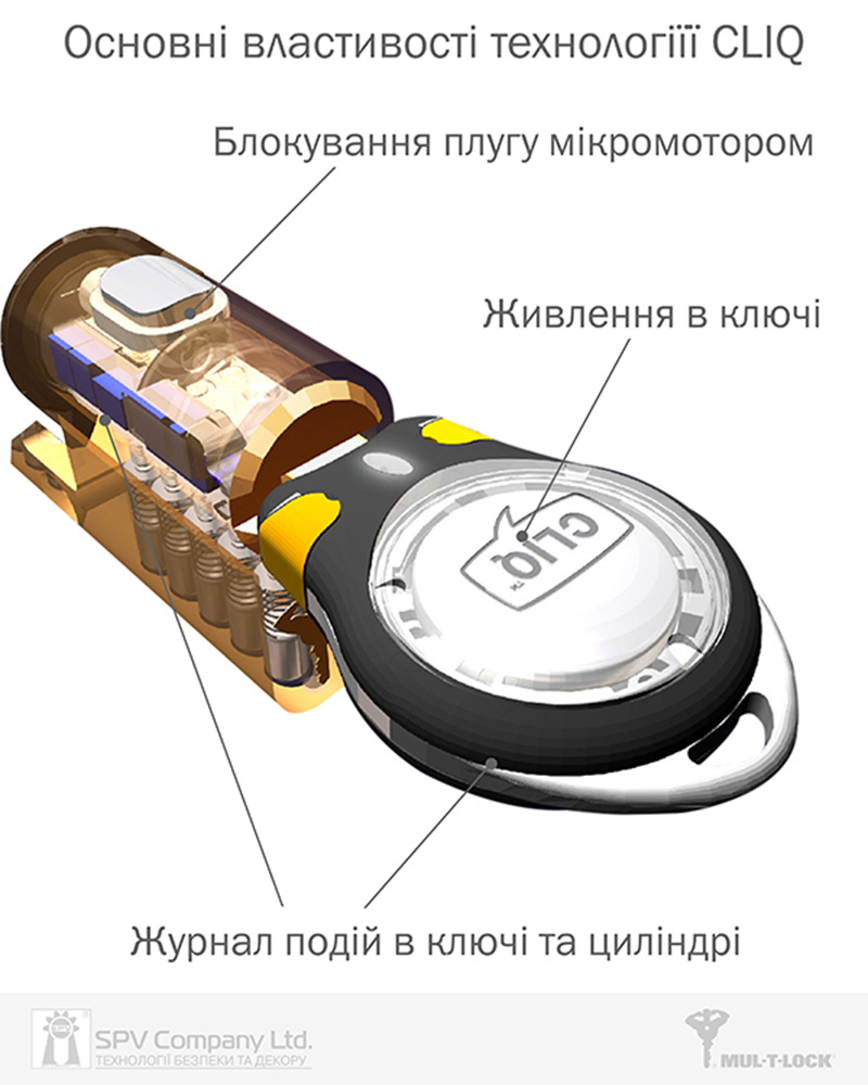 Крім високосекретного механічного коду, продукція із технологією CLIQ® має ще 2 рівні електронного контролю.