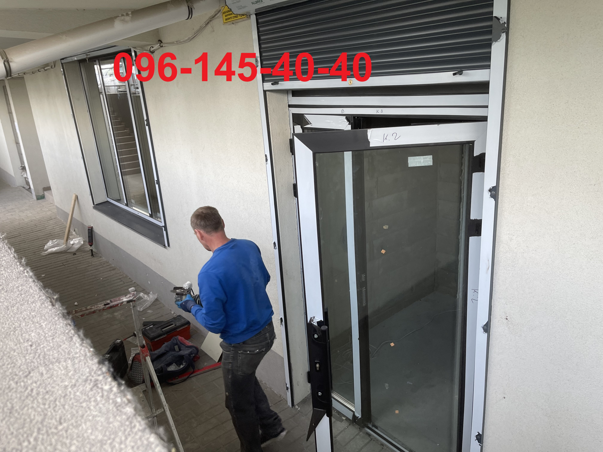 Теплі алюмінієві двері з захисними ролетами в офіс